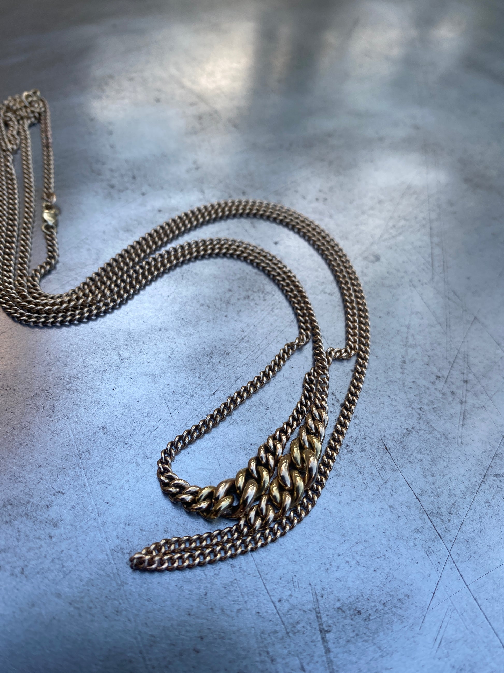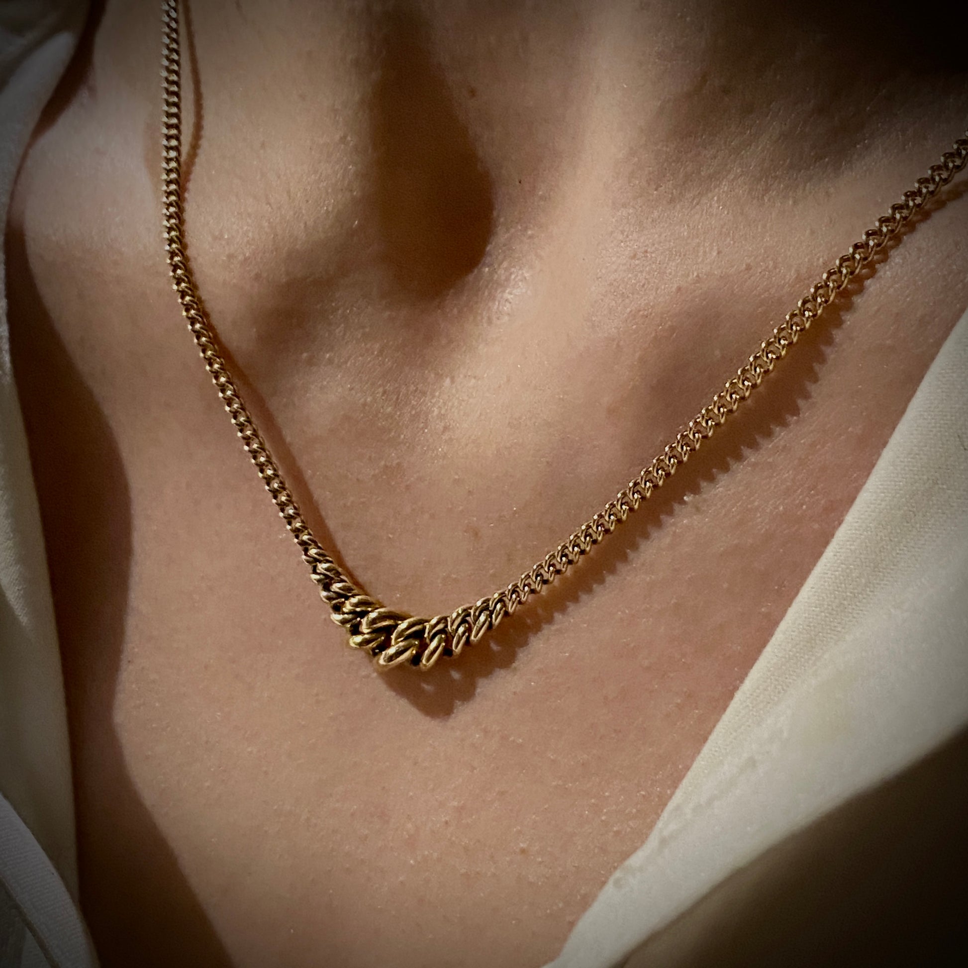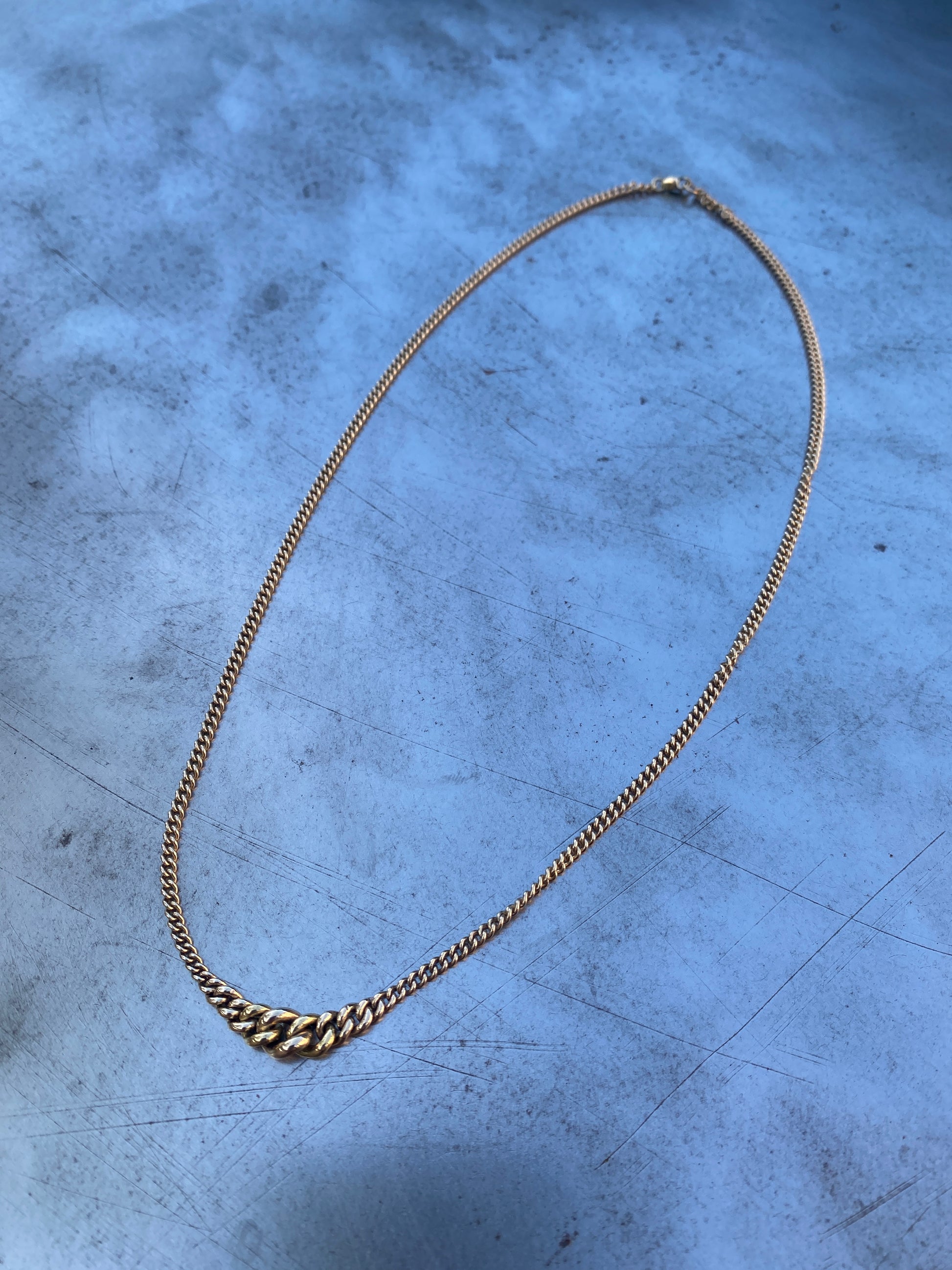 Stunning version of our silver droplet chain necklace done in solid 14k gold. Styled for a timeless and elegant look that can be worn with any ensemble. Made by hand in Los Angeles. Certified independently.