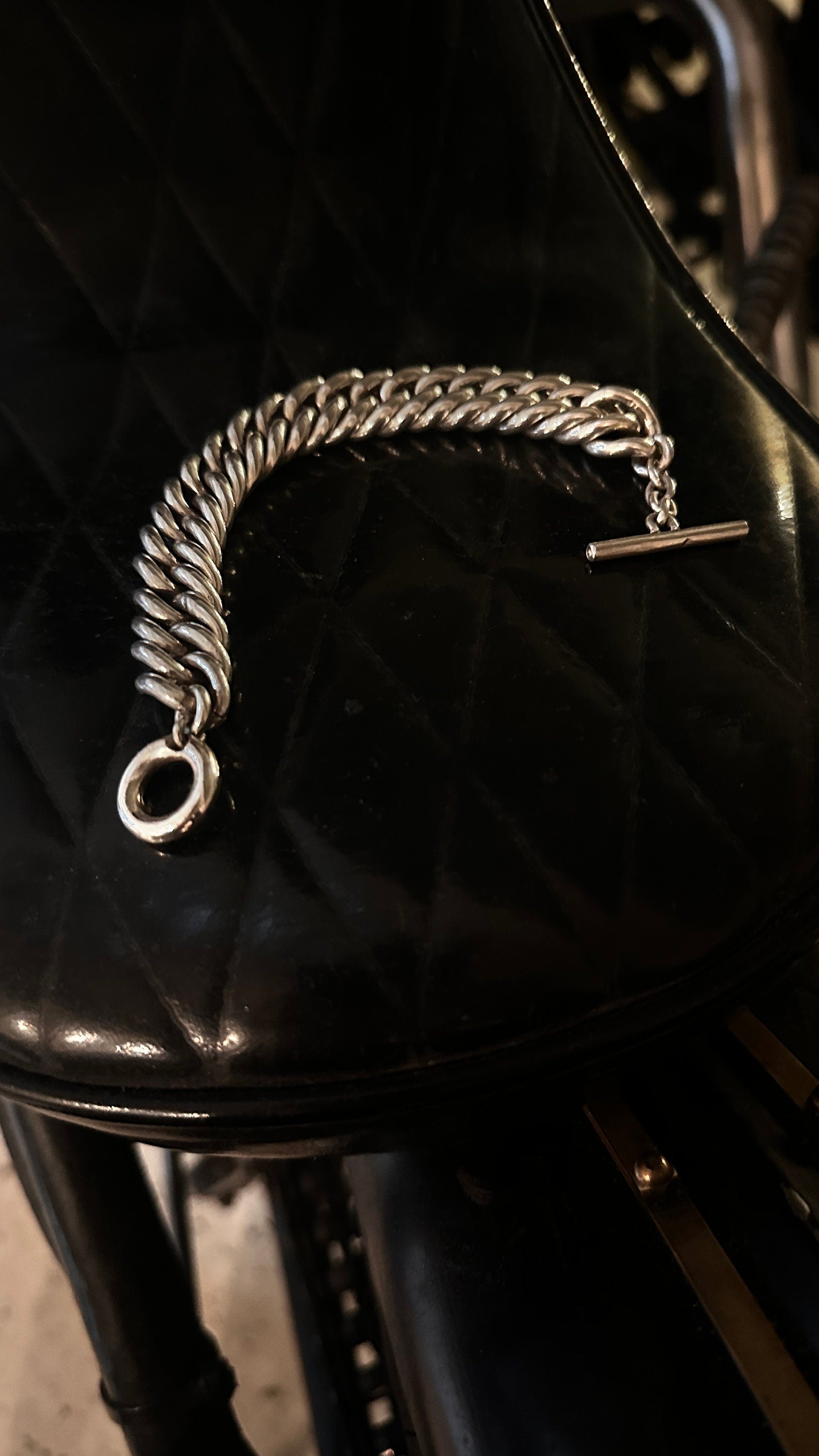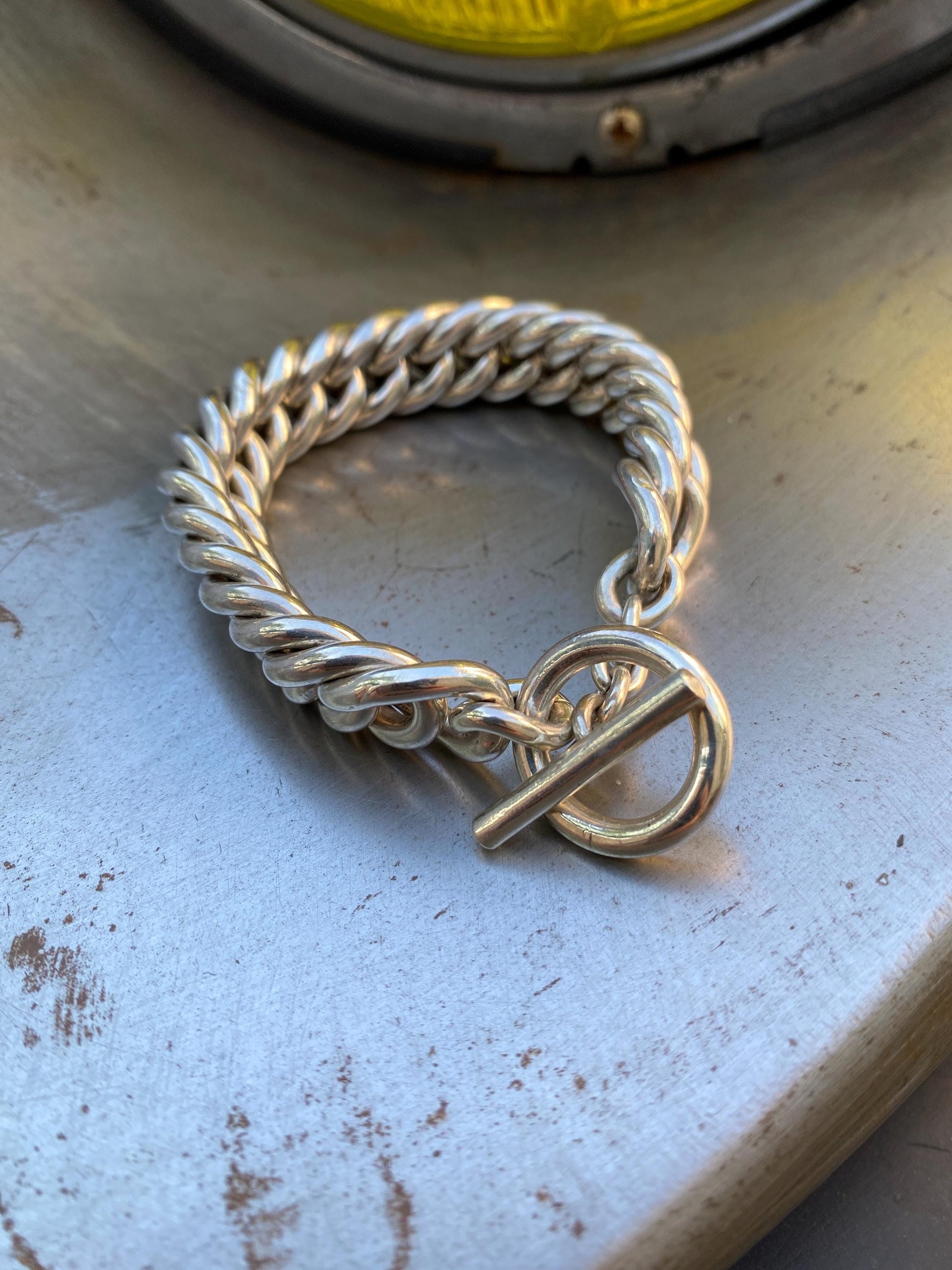 All bracelets need to be custom fit. Made to order from solid sterling silver. Double curb links with a toggle clasp or spring clip.